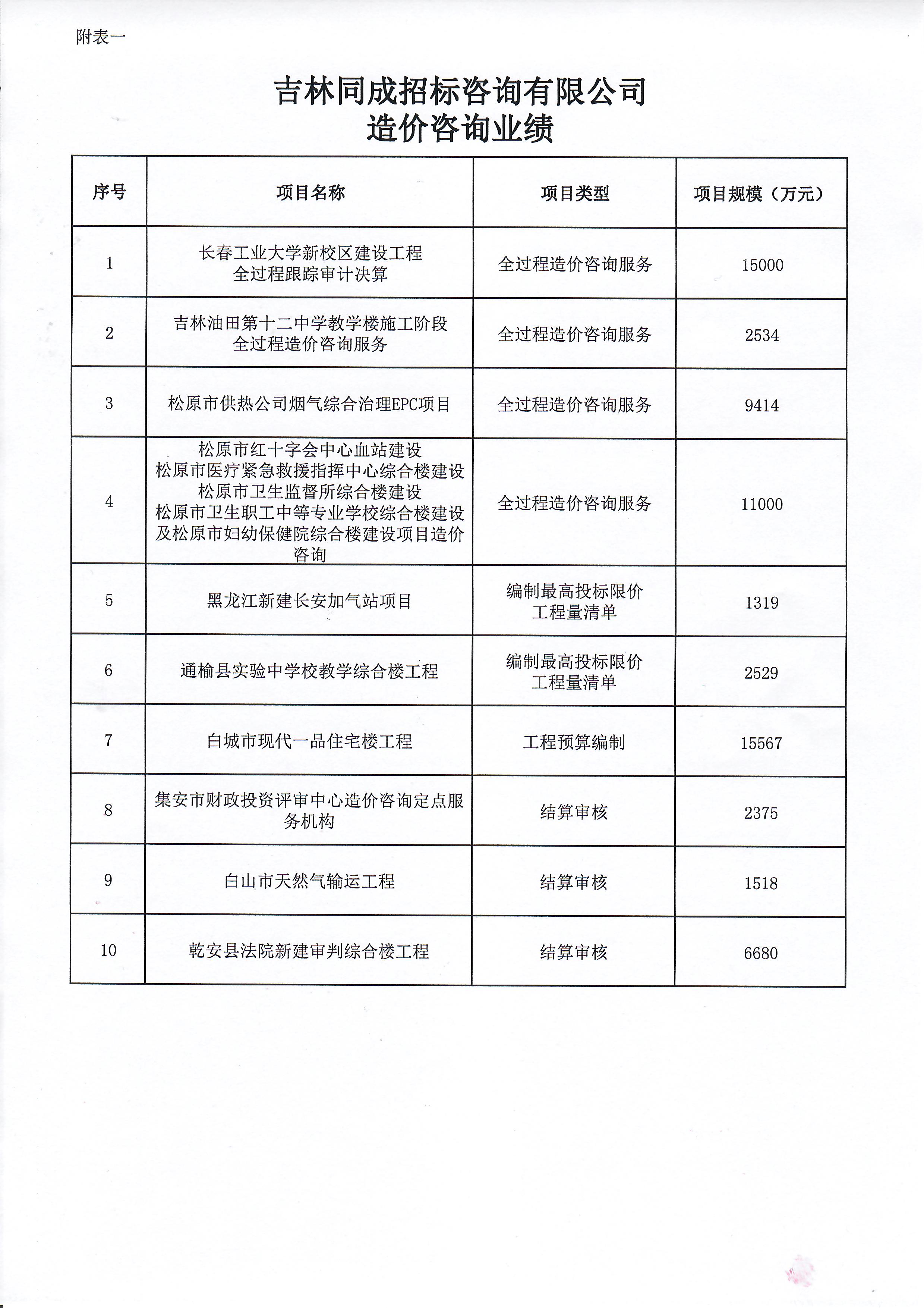 工程建設(shè)項(xiàng)目咨詢業(yè)績(jī) |
